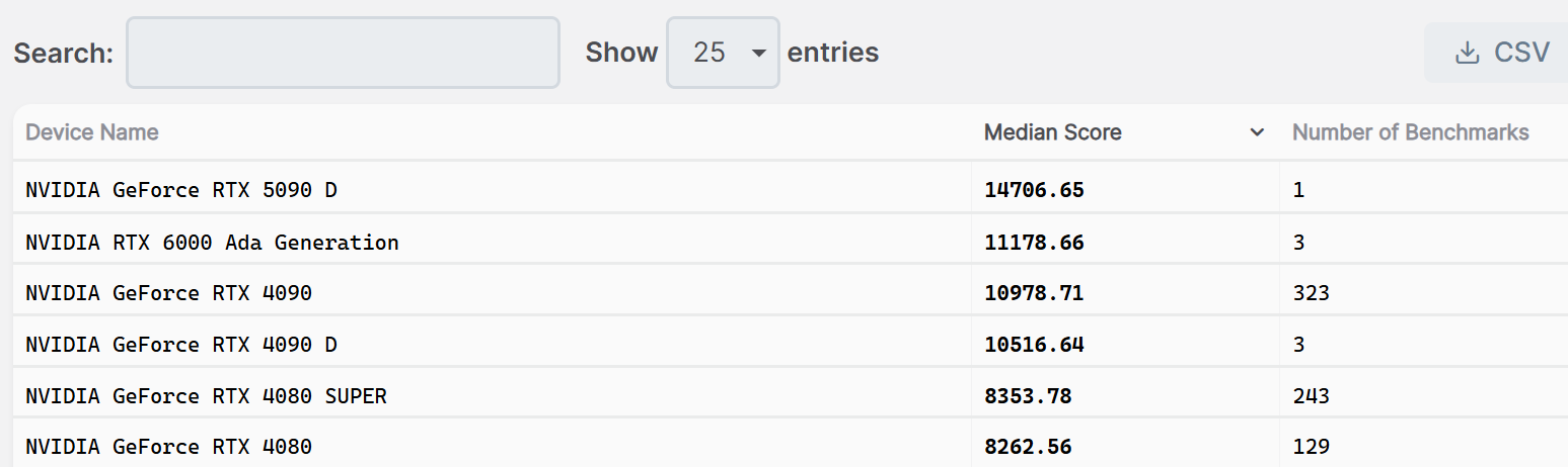 На основе отдельных доступных тестов GeForce RTX 5090D на 27,6% быстрее RTX 4090, в то время как RTX 5090 на 34% быстрее. Стоит отметить, что эти тесты нельзя сравнивать напрямую, поскольку они используют разные версии Blender. Скриншоты ниже показывают только результаты соответствующих версий:
